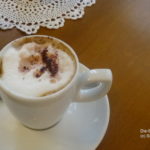 im Dom Café, bei einer Tasse Cappuccino und einem Stück Kuchen,